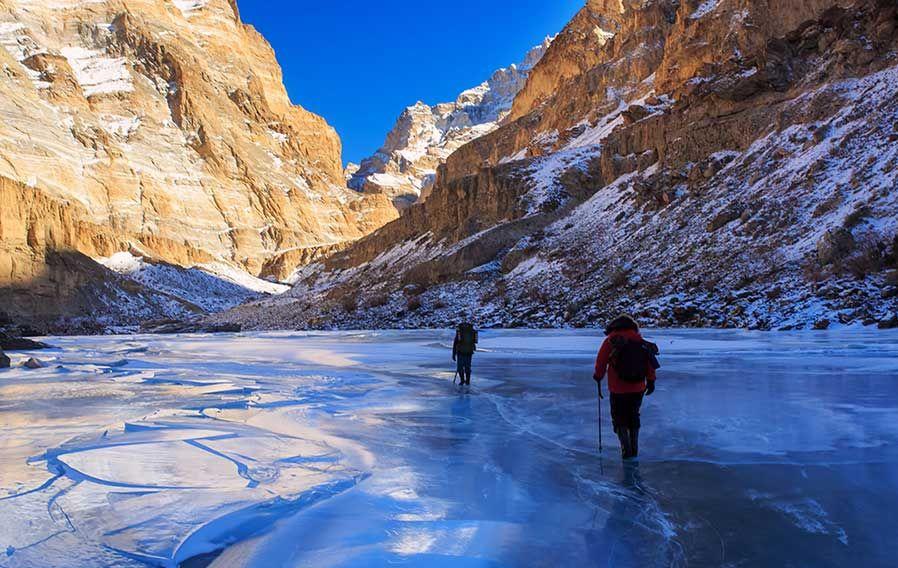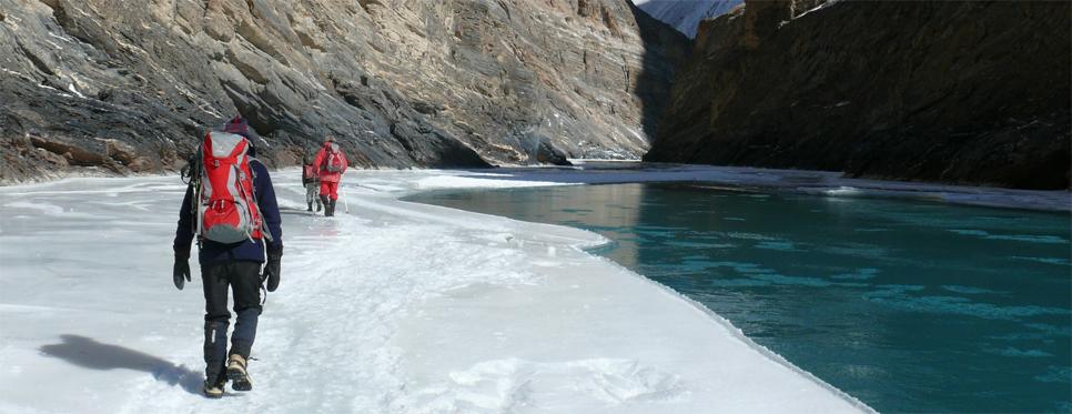 Zanskar Frozen River Chadar Trek. It can be difficult, but it is a life changing trek. Surrounded by the steep mountains, in the winter, the snowfall closes mostly all the mountain passes of this place, leaving the roads treacherous. Amidst the puffed up winter the villages become cut off from rest of the world. The nature’s furry evident during November and March. The only way left for the snow-bound villagers is to trek on top of the ice of frozen River Zanskar. Locally known as the Chadar Trek, remains the only route, connecting villages in the Zanskar valley - deep in the mountains with Chilling wind, along the frozen Zanskar River. For centuries, this route has been used by the traders and transporters, in February when the ice is most stable and reliable.