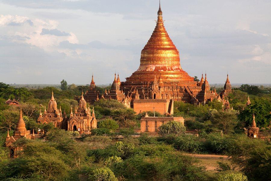 After breakfast, transfer to airport for domestic flight to Bagan. On arrival, transfer to hotel and proceed for sightseeing, starting with the busy Nyaung Oo local market and continuing with visits to a diverse selection of the most important Pagodas and temples, such as Shwezigon Pagoda, built by King Anawrahta in the early 11th century, Kubyauk Gyi, a temple with exquisite murals of Jataka scenes, and Ananda Temple with four huge standing Buddha images and numerous seated figures in niches around the galleried interior. Then visit Htilominlo Pagoda and Khay Min Ga Temple. Enjoy your lunch at local restaurant. After lunch, visit lacquer workshop to learn about the fascinating technique of this art. Visit the famous Thatbyinnyu Pagoda constructed by King Alaung Sithu and Shwegugyi Temple also known as "Nandaw Oo Paya" built by King Alaungsithu in 1140 A.D. Watch the sunset from the Ayeyarwaddy River. Overnight in Bagan.