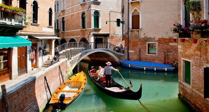 Touring by private first-class air-conditioned motorcoach. Canal transfer boat in Venice