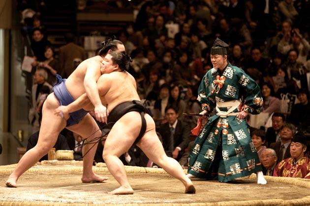 Sumo wrestlers are something apart. They are giant, who would attract attention in any country. They are giants, who would attract attention in any country. They are what one would imagine the fruit of an affair between a phlegmatic, somnolent hippo and an aggressive, heavy-limbed gorilla to be like.