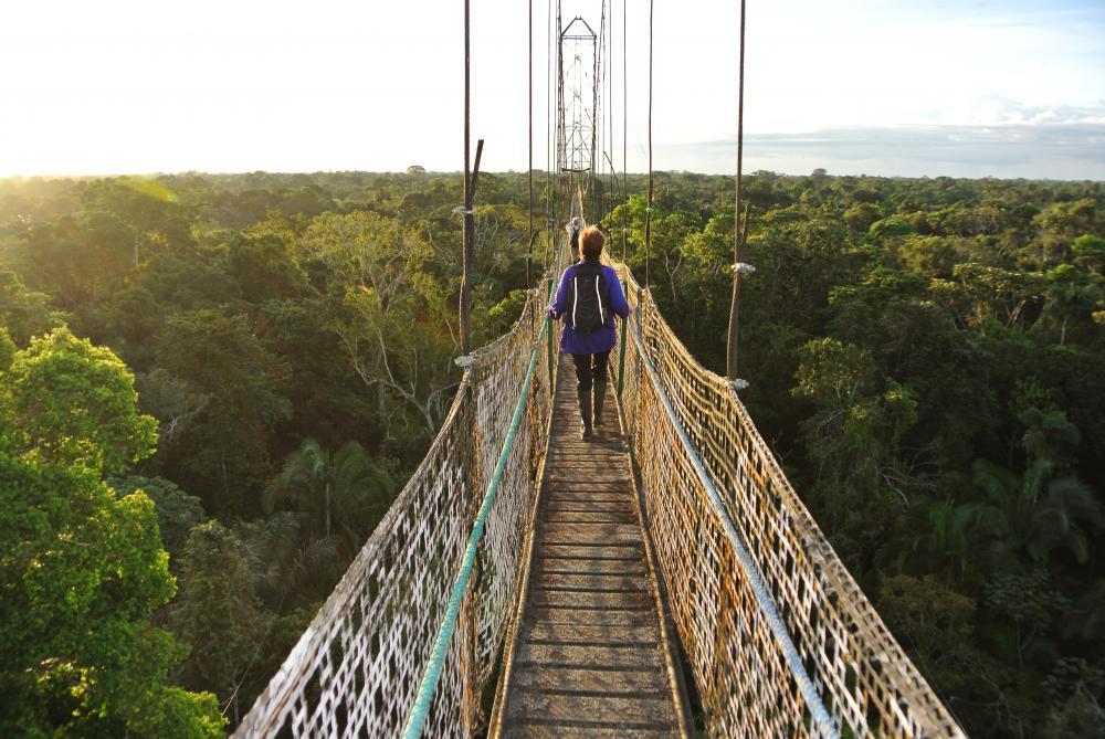 Crossing over the Andes, follow in the footsteps of Francisco de Orellana, the first European to see the Amazon. Descend the eastern slope of the Andes into the jungle to the banks of the Napo River, where you will board a short CANOE RIDE downstream to your lodge, Casa del Suizo. Arrive at this tranquil Amazonia refuge, surrounded by tropical rainforest, and enjoy a welcome drink by the pool before dinner. (B,D)