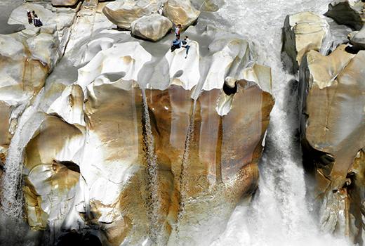 As you move towards Gangotri witness and admire the beautiful Gorge at Bhairon Ghati over which there is a steel girder bridge. Beyond the bridge, awaits the holy land of Gangotri, where the Goddess Ganga descended on Earth from Heaven, with a Temple of Goddess Ganga marking the spot where the Goddess descended to the Earth, at an elevation of 3200 m surrounded by Deodars (Cedar) and Chir (Pines). Ashrams and Dharamshalas are located on the far side of the river. Visit the "Bhagirath Shila", where it is believed that Raja Bhagirath used to worship Lord Shiva on a slab of rock, situated near the temple. Submerged in the river there is a natural Phallic Stone, where, according to legends, Lord Shiva sat when he want to receive the Goddess Ganga in his matted locks. And, further a day's trek will take you to Gomukh, the source of the mighty Ganges.