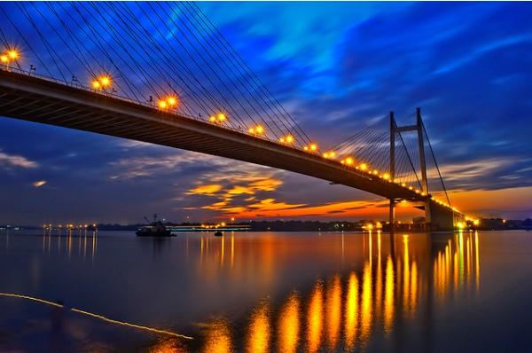 As the night will become mature, the scene around you will be one of priceless serenity. A rising breeze cinching the swirling waters into dreadlocks trapping the light off Bandel’s Portuguese church (c. 1599). A train sneaking across the bridge looming just to your north will cast a slurred and artistic use of lights and shades on the river. This is the Hooghly Jubilee Bridge, opened in 1887 to commemorate the golden jubilee of Queen Victoria’s coronation. Now, the colonial stretch of the river will be heavily upon you. The final cruising day can be a blur of colonial glimpses: arrogant yet sad epitaphs. By late afternoon you are approaching Calcutta.