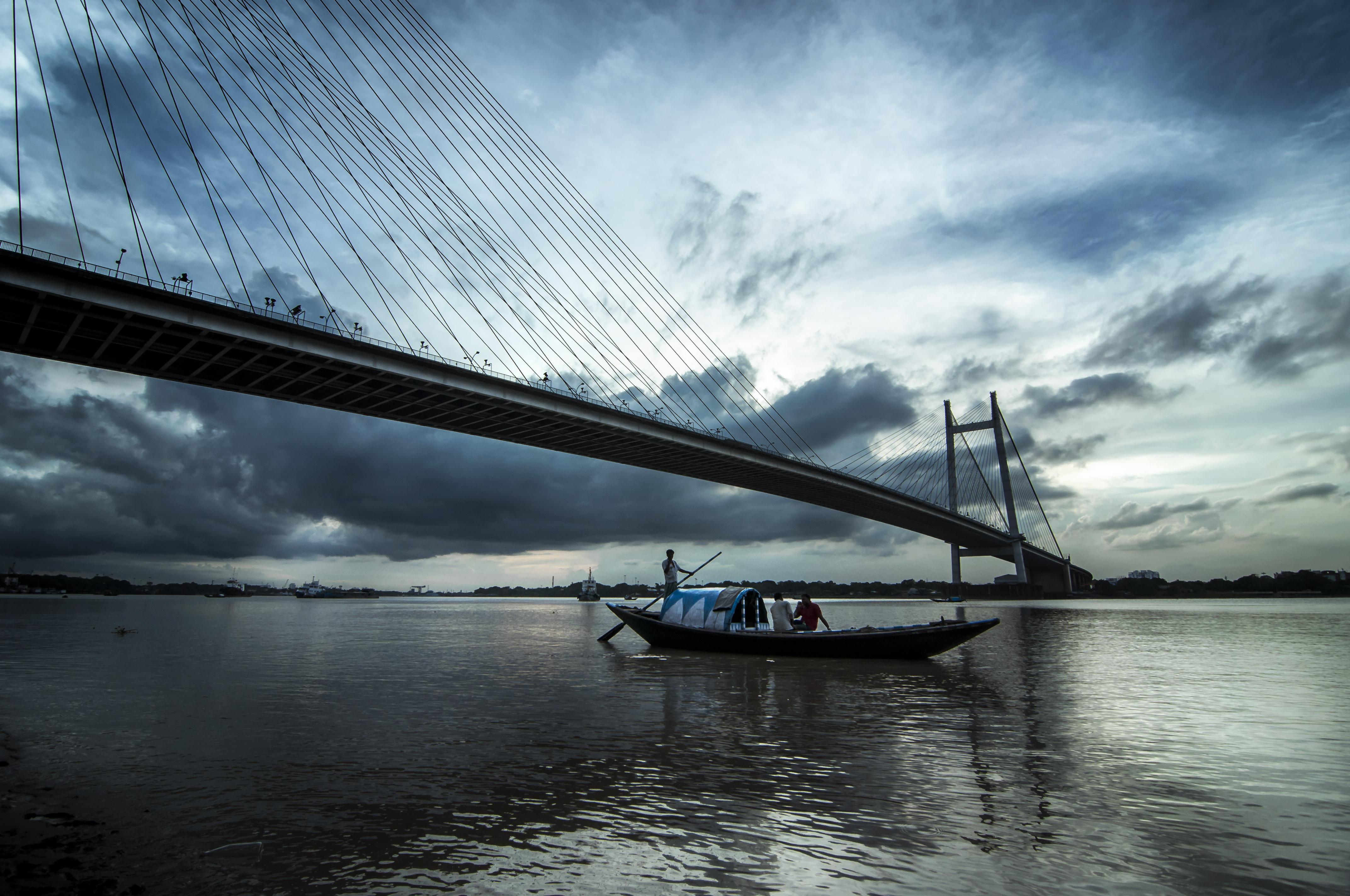 All the visitors and most of the crew are on the front deck for a grand entrance into the city. Calcutta casts its spell with its disarming Ghats and derelict mansions. We bet you will see it in the way everyone jostles for the sweet spot at the bow. Looming ahead is Howrah Bridge, the oldest and grandest of the three bridges set across the river at Calcutta. A crowd of pedestrians might gather on the bridge to see you through. Wild mutual cheering will follow as you pass under. You will moor just south of Howrah Bridge at dusk, exactly as promised. Homeward bound that will be and in the end the predominant memory you will carry home is that of the intricate terracotta at Kalna, Nawabi Murshidabad, and certainly the colonial past scattered along the shores from Bandel to Calcutta.