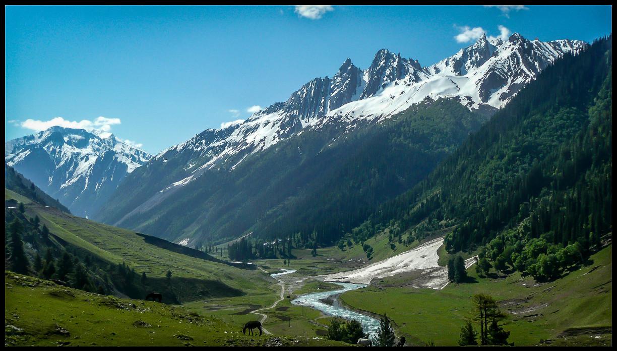 While, traversing through the 'Meadow of Gold', Sonamarg Hill Station in the state of Jammu & Kashmir, it is not difficult to lose track of time in the scenic beauty of nature's artistry. Try to peek into the valley and depth of it along with gravity would seem to be drawing. The pointed conifers make the whole mountain appear pointing towards sky trying to attain some more height in the process. The white of snow matched with brown patches of earth has no match, when it comes to subtle yet sublime color of landscape.