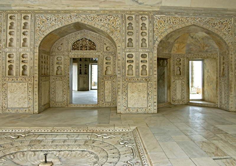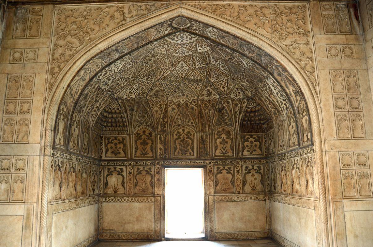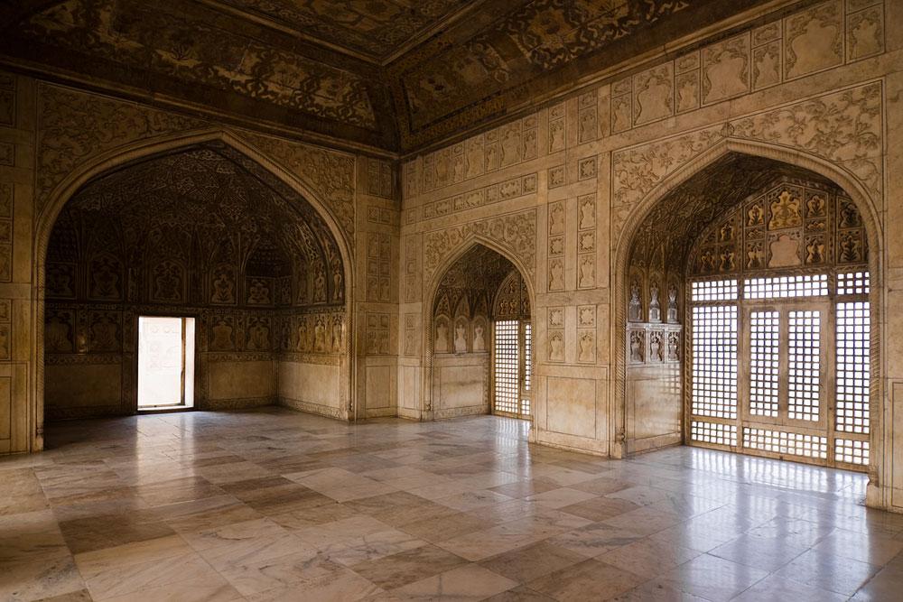 There are also numerous constructions made of unadulterated sandstone with eye-grabbing carvings. The wonderful piece of smart architecture is clearly displayed on the walls that are hollow and are full of continuously running water, in order to cool off the rooms of the fort. One of the most striking facts that make Agra Fort a must-visit destination in Agra, is the arresting view of Taj Mahal and the gleaming Yamuna River from the Balcony of the fort.